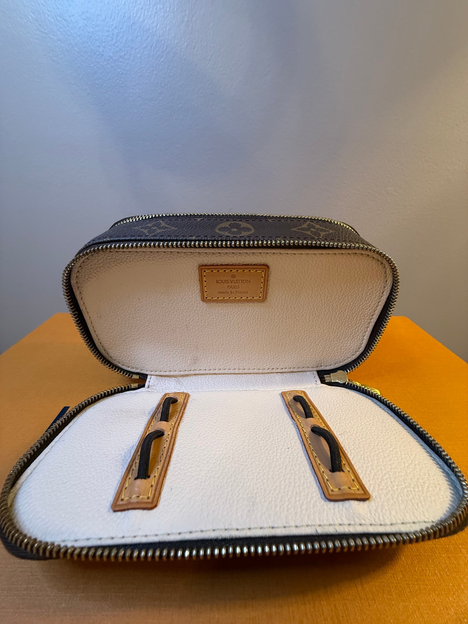 In excellent pre-owned condition. Canvas looks great. No cracks, holes or tear hardware very shiny and gold. Both zippers work well. The interior is very good and without any peeling or stickiness. This is a super cool piece for any collector.